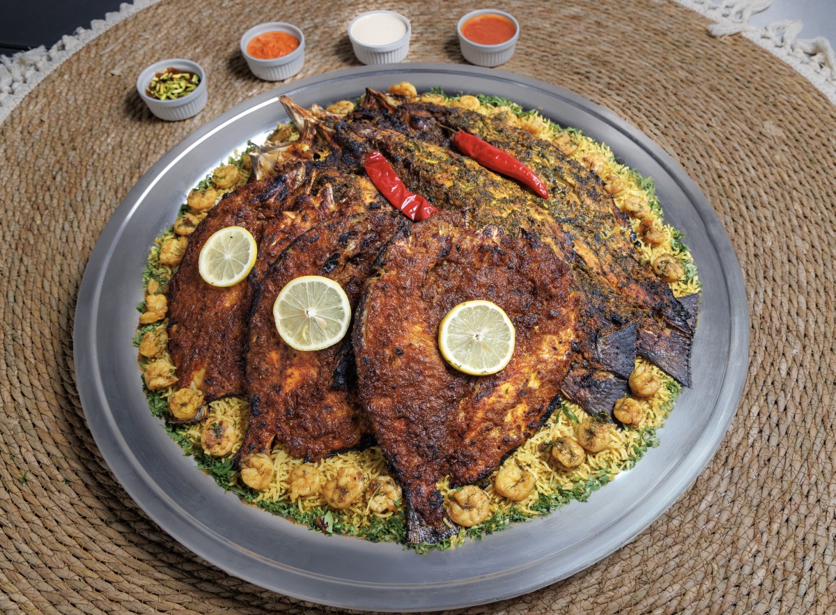 A generous seafood feast combining two freshly caught Seabass and three Sea Bream, all grilled to perfection for a smoky, tender flavor. Served with fluffy shrimp rice and paired with authentic sides — tangy Mahbuj, zesty Dakous, creamy Tahina, and a sweet touch of Halwa. Crafted to satisfy gatherings of up to 10 people.