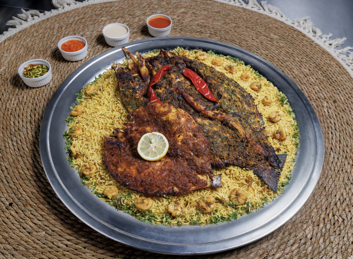 A delightful duo of flavors — one freshly caught Seabass and one Sea Bream, grilled to perfection to bring out their natural taste. Served with fluffy shrimp rice and paired with traditional sides: tangy Mahbuj, zesty Dakous, smooth Tahina, and a sweet finish of Halwa. Ideal for sharing among 4 people.
